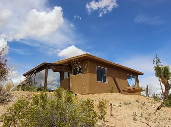Here?s the perfect 2BED/1BA desert dwelling that has the high desert scene nailed. After all, it?s tucked away in the legendary Mojave Desert, in an isolated little valley. Joshua trees. Check. Reliable sunny weather. Check. Awesome skies. Check. Desert vistas. Check. Hiking. Check. Comfort, privacy, seclusion, spruced up?it has it all. Rustic fireplace makes it a winner even in the winter, & especially at night when swinging in the hammock meets stargazing in one of life?s happiest mash-ups. Vast windows wrap around the Living & Dining Rms flooding the space w/natural light & desert views. Country wood laminate flooring carries through the entire home. Dutch & glass doors provide the house w/charm & brightness. Interior of home is richly hued w/current spicy paint tones. Updated kitchen is complete w/stainless appls & even a wine rack. You can enjoy the surrounding outdoor patio space whether watching a magnificent sunset or entertaining a group. 2 outdoor sheds finish the home, one is complete w/electricity w/220v, just ready for your next innovative project. Close to businesses & our new gem, La Copine restaurant. Off the beaten path & far from the intrusion of big city life. A great refuge to recharge. An incredible opportunity not to be missed.