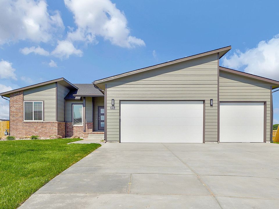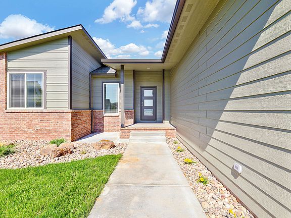 Brand new home in Goddard School District! Available now! 3 bedrooms and 2 bathrooms on main floor, with large rec room, 2 bedrooms and full bathroom in basement. 1,125 sq ft on main floor, 1,000 sq ft in basement. Large, open floorplan with kitchen island, dining nook and living room that separates the primary bedroom and bathroom from 2nd and 3rd bedroom on the main floor. Covered patio, large fenced yard, sod and landscape. Basement rec room and bedrooms have large daylight windows. Luxury vinyl flooring throughout, granite countertops, stainless steel appliances (range, microwave, dishwasher and refrigerator). Ceiling fans in living room and bedrooms, oversized 3 car garage with openers and keypad entry. Community Pool and playground coming soon! Sidewalk access to Prairie Sunset Trails bike/walking path. Non Smoking, 12 month lease. Owner provides lawn mowing and irrigation. Tenant pays gas, water, trash, electric and internet. Dogs allowed, limit two. Dogs under 40 lbs are additional $50 per month, per pet and dogs over 40 lbs are additional $75 per month, per pet. No Cats