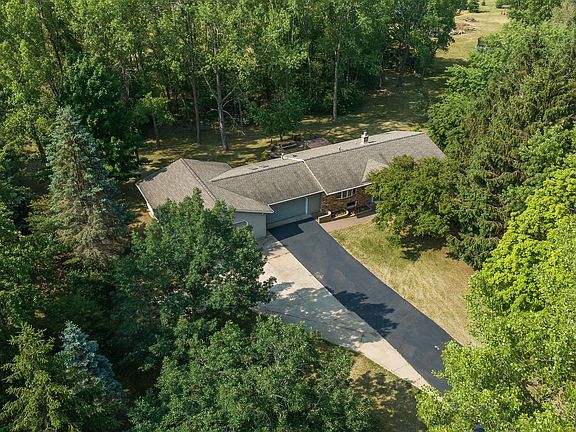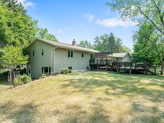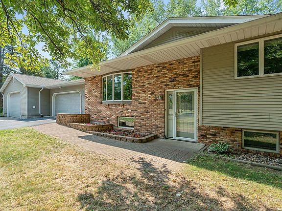 Incredible opportunity to live in this well-maintained home on 1.56 acres. 3 BR, 2 Ba with a beautifully updated kitchen featuring hickory cabinets, maple flooring, quartz counters and SS appliances. Garage is really something! A 2-car, that's heated and insulated (24 x 24 Ft-currently a wood shop), attached to a 28 x 36 ft garage ...lots of vehicles, toys and the like can fit in this one! Freshly resurfaced driveway this summer. Enjoy grilling on the oversized two-tier private deck w/ a pergola for shade. Lower level has loads of natural light, walks out to a little patio and will be perfect for cozy warm nights by the fireplace in winter. Located minutes drive to beautiful Willow River State Park for hiking/ picnics & situated in an established neighborhood, with large lots, plenty of trees and privacy.
