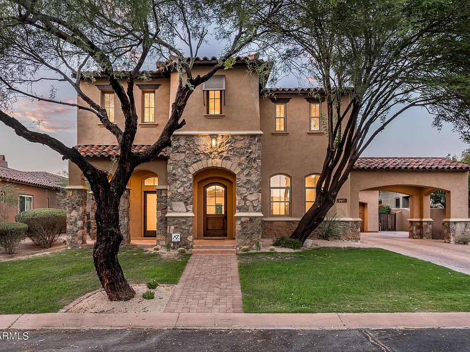 Completely renovated- DC Ranch Camelot home with a modern and warm sophisticated feel. This property sits on a premium lot with north/south exposure on a gated cul-de-sac location. Adjacent to a natural wash with stunning mountain views, creating a peaceful and private setting. The new soft contemporary interior finishes include; custom cabinetry, wide plank oak wood flooring, light fixtures, new Wolf/Subzero appliances, marble countertops, wine wall, new bathroom finishes and sleek designed fireplace in great room. New HVAC systems have also been added making this home completely move in ready. An open concept layout featuring a light and bright kitchen overlooking a simplistic designed great room perfect for entertaining. Main level living also includes a bonus room and dining room with vaulted ceilings and clerestory windows providing an abundance of natural light throughout. A new custom designed staircase leads to three spacious guest bedrooms and a large Primary Suite with sitting room and views of the surrounding mountains. The exterior of the home has a charming front courtyard with stone fireplace and the backyard is perfect for entertaining complete with pool, synthetic turf, new landscaping and custom outdoor kitchen with top- of -the line appliances. DC Ranch is a coveted master planned community known for its private golf clubs, community center, nearby shops and restaurants, biking/hiking trails, and access to nearby Loop 101. Gated privacy and easy access to nearby parks, paths and Copper Ridge K-8 school make this an idyllic family enclave.