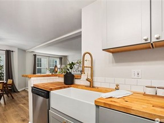 This beautifully remodeled home is in a prime location, just a short walk to Greenwood's shops and restaurants, with Greenlake and Phinney Ridge nearby. Enjoy a quick commute downtown with bus access across the street, Rapid Ride, or the Northgate Transit Center with new light rail! This sunny, south-facing corner unit boasts two decks, an in-unit LAUNDRY ROOM with washer/dryer, secure garage parking, and ample storage. The newly remodeled bathrooms and kitchen add a fresh, modern touch. Enjoy cooking in your kitchen with butcher block counters and stainless steel appliances. Relax on the decks in summer or cozy up by the fireplace in winter.