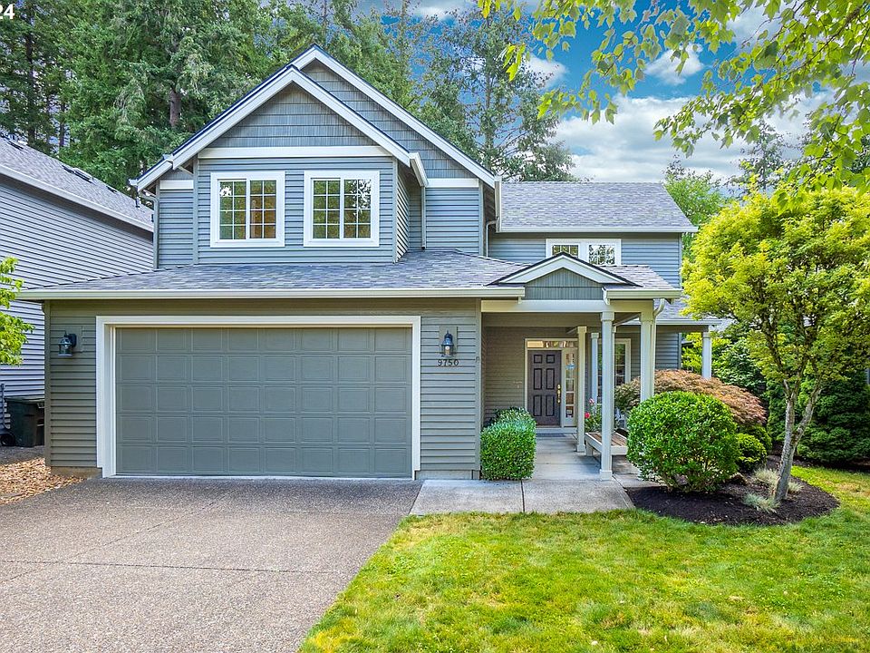 Beautifully updated home with a charming private backyard. This home shows pride of ownership. Updates in the past few years include a new roof and gutters, new interior and exterior paint, a new fence, a new furnace, AC, and water heater. Open great room floor plan. Kitchen with custom alder cabinets, granite counters, and stainless appliances. New dishwasher and microwave in 2023. Marble floors through much of the main floor including kitchen and dining area. Spacious great room with gas fireplace and a wall of windows looking out to the backyard. Vaulted primary suite. Large bonus room. Built-in speakers throughout home. Security system. Washer/dryer. Composite decking. Covered front porch and back deck perfect for year around use. Private fenced backyard with sprinkler system. Great location near Murrayhill and Progress Ridge. Mountainside High boundary.