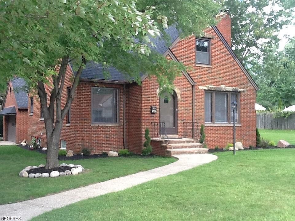 Brick Cape Cod bungalow is so charming - updates galore! PRIDE OF OWNERSHIP! Driveway on 'side street' to 2+ car garage, then to enclosed breezeway for guests & out of weather. Attractive Kitchen with ample counter & cabinet space! Gleaming refinished beautiful wood flooring throughout! Formal Dining Rm w/built-ins, Living Rm w/fireplace & large picture window, 2 bdrms. up w//full bath. **MANY Updates include: LeafGutter Guards - 2015, Window blinds - 2015, Electric outlets/GFCI to basement - 2015 + 2016, Roof (tear-off) - 2014, A/C - 2014, Electric Panel - 2014, landscaped - 2014: dishwasher, refrigerator, stove, washer & dryer! ** NEAT & CLEAN - just MOVE RIGHT IN! Rec Rm w/fireplace, bsmt. commode, laundry, storage + workshop area. Excellent area of fine homes, minutes to metro-park, shopping & I480.