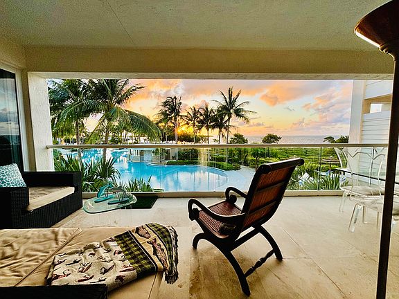 Oceanfront condoPrivate porch overlooking sunrisesUnique artworkHurricane-resistant sliding doorsSeamless indoor-outdoor living