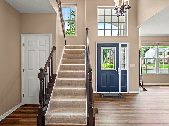WOW—this one is stellar! From the completely remodeled kitchen to the finished lower level, every inch of this home is pristine. The gourmet kitchen is straight out of a magazine with custom cabinetry, granite counters, wine rack, tile backsplash, stainless appliances, island, and pantry—the works. Luxury vinyl flooring flows throughout the first floor, leading into a cozy great room with fireplace and a stunning 4-season room addition that offers endless versatility. Upstairs, you'll find 4 spacious bedrooms including a vaulted primary suite with a beautifully updated bath. The finished walkout lower level features a 5th bedroom, full bath, wet bar, and access to a covered patio. Step outside to a fenced, level yard with peaceful pond views and a firepit area perfect for relaxing evenings. First-floor laundry, newer roof, and located in a beautifully maintained community with 3 pools and a park. Homes this meticulous and move-in ready don't come along often—don't miss your chance!