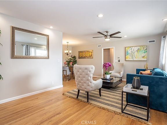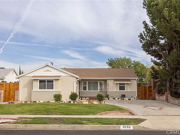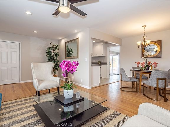 Spacious, bright and beautiful! This 3 bedroom 2 bath Northridge home welcomes you with an amazing open floor plan. Gorgeous gleaming wood flooring in the living room that continues throughout the dining area, hallway and all bedrooms. Kitchen boasts quartz counters with an abundance of counter space, plenty of cabinets and drawers, with stainless steel appliances. Three generously sized bedrooms with lots of detail and two remodeled bathrooms. Step-down family room has a lovely fireplace and plenty of lighting and could be used as an additional, fourth bedroom.Plenty of yard space and in-ground spa, ideal for entertaining, gardening, or simply relaxing. Other features include Indoor laundry room, dual pane windows, copper plumbing, recessed lighting, and large driveway for RV parking. This home exudes pride of ownership. Close to Fwys, shopping, dining and more!