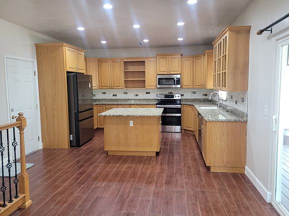 Home is ready to rent. Nice spacious 6-bedroom home, 3 bathrooms, 3-car garage, Nice deck, swing set for kids, and several fruit trees, tranquil neighborhood. Home is ready to rent.
