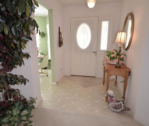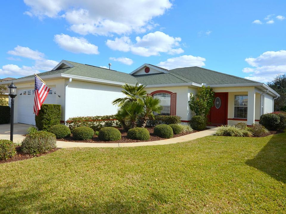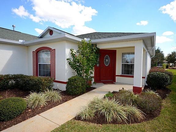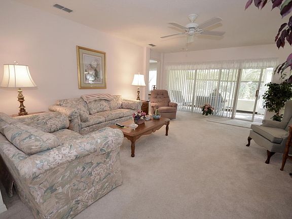 PRIVACY IN BACK! Relax and enjoy retirement living in this very nice Wakefield model home located in the much sought after gated 55+ Community of On Top of the World. Home features neutral colors throughout, granite counters in kitchen, upgraded cabinets in kitchen, double pane windows, inside laundry with washer & dryer, professional landscaping, and more! Enter the foyer and view the spacious Living Room with triple slider that leads to a Lanai under roof. Mature landscaping provides privacy in back. To the left of the foyer is the Den, and guest hall which leads to the Laundry Room, Guest Bedroom and Guest Bath. To the right of the foyer is the kitchen with breakfast nook, pantry, and eat-at counter. The Dining Room is located behind the kitchen. The split bedroom floor plan