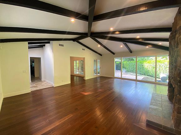 Stunning single-story home is located in the estate area of Beverly Hills with stylish and classic design and brilliant attention to quality and detail from room to room this quiet home radiates upscale elegance. The setting is tranquil, serene, private and charming. The home has three bedrooms, two bathrooms, high ceilings and lovely natural light throughout. The living room features beamed ceilings with gleaming hardwood floors and a fireplace. The kitchen features stainless steel appliances, granite countertops and tile floors and leads into a formal dining. The master bedroom leads out to a private patio, very tranquil setting with mature Oak Trees and Lush Landscaping. Wonderful location with easy access to the Westside or Valley.
