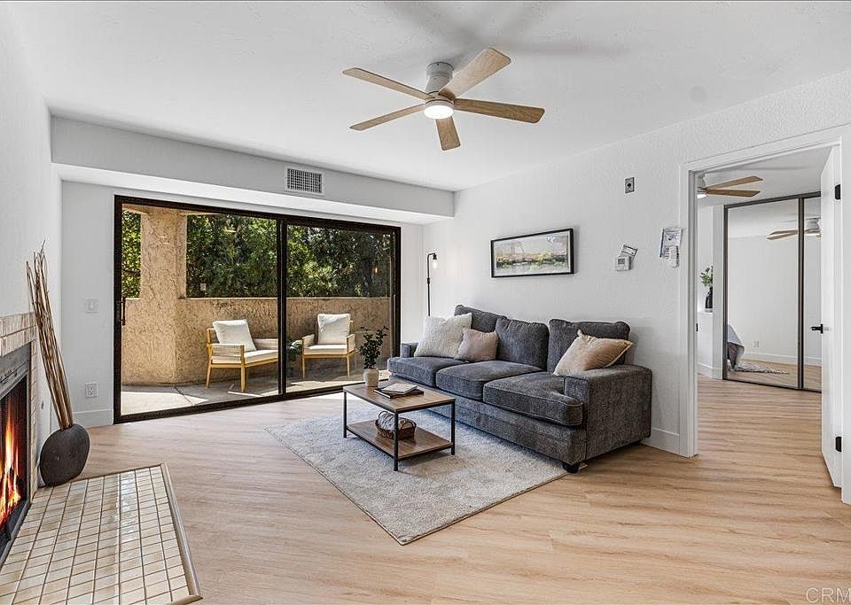 Step into your private oasis in Mira Mesa conveniently located next to the 15 freeway and Scripps Ranch. Surrounded by koi ponds, mature trees, and tranquil water features, this beautifully renovated top floor Creekside condo blends peaceful living with everyday convenience. Inside, every detail has been thoughtfully updated. The open layout features brand new flooring, fresh interior paint, and a new central AC system for year-round comfort. The inviting living room centers around a cozy fireplace and flows seamlessly to a private patio, perfect for morning coffee or evening relaxation. The kitchen is equipped with brand new appliances, sleek quartz countertops, and generous cabinet space, making both daily meals and entertaining a breeze. The primary suite is spacious and boasts a stylishly updated bathroom. The second bedroom and bath offer flexibility for guests, a home office, or additional living space. Brand new in-unit laundry and two car tandem garage add everyday ease. The Creekside community offers resort-style amenities including a sparkling pool, spa, and peaceful walking paths surrounded by lush landscaping. The location is unbeatable, walking distance to grocery stores, restaurants/bars, coffee shops, parks, and top-rated schools. Convenient freeway access to I-15 and I-805 makes commuting simple, and several major military bases are located nearby. This home is VA-approved and move-in ready, offering a rare opportunity to own a fully updated property in one of Mira Mesa’s most desirable communities. Nothing like this comes to market often. Schedule your tour today and experience the Creekside lifestyle for yourself.