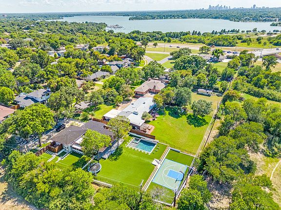 A Rare Mid-Century Modern Estate in Dallas was built in 1955 by Trammell Crow as a home for his mother, this home has been restored and expanded (2022–2024) to blend architectural heritage with modern function. Over half an acre, one of the highest elevations in Dallas and bordered by Norbuck Park, property offers privacy and natural views rarely found within city limits. Glass walls and sliding doors brighten the home and link it to the outdoors. four bdrms and three bath, designed for functionality. The chef’s kitchen features built-in refrigeration, double gas ovens, gas cooktop, oversized granite island deep double sink, custom seating, and extensive cabinetry. A formal dining room opens to the main living area. A flexible secondary living space. A private bedroom w full bath on main floor. Upstairs, two more bedrooms, full bath, and the primary suite—with soaking tub, walk-in shower,double vanity, custom cabinetry. Warm wood flooring pairs with stone,marble,and tile throughout for a prestine feel.Outdoor Paradise Designed for personal enjoyment and large-scale entertaining, the backyard includes a sparkling pool and spa, full-size sport court, and generous sun deck, surrounded by professional low-maintenance landscaping with artificial turf. A broad covered deck overlooks Norbuck Park and leads to an outdoor kitchen equipped with dual refrigerators, gas grill, cooktop, beverage fridge, and granite bar. An enclosed dog run with pet doors enhances convenience for pet owners. Distinctive Features, Sweeping curved driveway & attached garage, Whole-home Generac emergency power system; Oversized laundry room with stone and tile finishes, Careful preservation of original architectural details paired with modern updates.This home represents the best of Dallas living: architectural significance, stylish updates, and a park-like setting that feels both private and serene—ideal for hosting or simply enjoying quiet moments surrounded by nature.