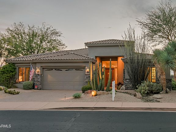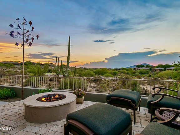 VIEWS, VIEWS, VIEWS! Commanding golf, mountain & sunset views set the stage for this stunning 3-bed+office, 3.5-bath home w/ private guest casita in gated Legend Trail. Thoughtfully designed w/ 3,391 sq ft of open-concept living, the chef's kitchen w/ premium stainless appliances flows into a spacious great room ideal for relaxed luxury & entertaining. 12' Ceilings & huge windows throughout create a light/bright open feel. The resort-style backyard features a sparkling pool/spa, firepit, and expansive patios that embrace the breathtaking scenery. Located on a premium lot w/ direct access to Sonoran McDowell Mountain Preserve trails. Enjoy top-tier Legend Trail amenities including golf, fitness center, clubhouse, and easy access to N. Scottsdale's finest dining, Carefree & Cave Creek!