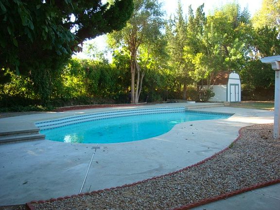 Spacious Pool House On Large Lot Mature Trees Large Storage Shed Garage Huge kitchen Granite Counter TopThis property is located in a very quiet residential area in a tree lined street near parks, jogging trails, mountains, horse trails, popular grocery stores, restaurants, shopping malls and much more.The 5 bedroom, 3 bath plus bonus room ranch style home Features: large lot, mature trees, fruit trees, sparkling pool, 2 car garage, large storage shed, large private back yard, grand fireplace, central AC, recessed lighting, ceiling fans, lots of closet space, large study/bonus room, large living room, large family room with sunken wet bar, guest quarters with full bath, large laundry room with lots of cabinets, large kitchen with lots of granite counter space, lots of cabinets, Viking stove top, oven, dishwasher and refrigerator.Master bedroom opens to the lovely back yard, three large closets, his/hers vanities and full bath.For more information please contact us directly at www.ontargetapartmentrentals.com, call 818-990-(RENT) 7368 or email us at info@ontagetapartmentrentals.com.