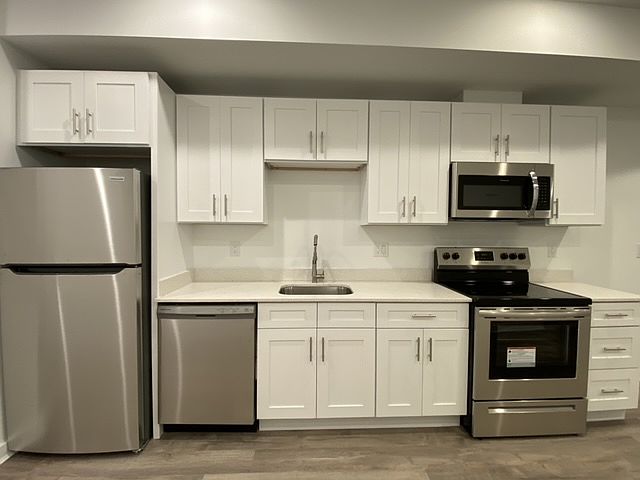 Open floor planOversized windowsSparkling stainless steel appliancesPrivate roof deckSoft-close cabinetsModern kitchen