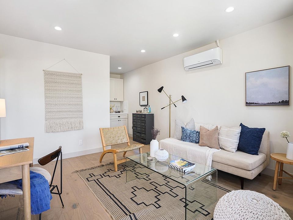 Welcome to Sunset Junction Bungalows, a collection of 3 fully restored vintage cottages, one block from the heart of Silver Lake's trendy Sunset Junction neighborhood. 976 is the back cottage on this quaint triplex hillside property. This one bedroom one bath bungalow has stunning views of the Hollywood side from the private front entrance, a fully remodeled interior and exterior with brand new appliances and finishes, new hardwood floors, new paint, along with private laundry hook ups and a private grassy yard. Just one block to all the trendy shops, cafes, and stores on Sunset Blvd. The exterior landscaping and fencing are still being upgraded and will have beautiful hedges around the entire property to increase privacy and security. Pets welcome. Street parking. Owner pays water, tenants responsible for remaining utilities. Private Laundry is included and located on exterior of unit, (private and only for this unit). Private grassy yard also included, with hedges to separate from other 2 units (it is not fully gated).