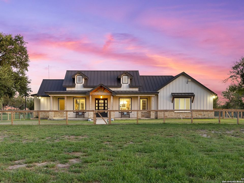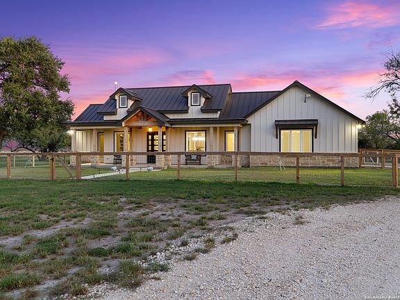 Welcome to 976 County Road 7718- a breathtaking 2023 custom-built luxury home nestled on over 11 acres of serene Texas countryside. This one-of-a-kind residence offers unmatched privacy, elegance, and charm. Boasting a secure electric gated entrance, full perimeter game fencing, sweeping panoramic views, and majestic mature oaks, this unrestricted property offers both security and natural beauty in a truly exceptional setting designed for elevated living. Step inside to soaring ceilings, an open-concept layout, and premium upgrades at every turn-including custom cabinetry, quartz countertops, elegant lighting, and a chef-inspired gourmet kitchen designed for both beauty and function. The spacious primary suite offers a spa-like retreat complete with a luxurious walk-in shower and stunning dual quartz vanities. Generously sized secondary bedrooms each offer spacious walk-in closets and abundant natural light, providing comfort and style for family or guests. Unwind on the expansive covered patio overlooking the picturesque landscape-an ideal setting for relaxing or entertaining. Enhancing the property's versatility is a fully finished detached workshop, along with a secondary metal structure-already framed and awaiting your custom vision, whether as a guest house, creative studio, or luxury recreational space. This expansive 11-acre property offers endless possibilities-perfectly suited for equestrian living, personalized enhancements, or simply enjoying the tranquility of the Texas countryside. Conveniently situated 30 minutes from San Antonio and only 5 miles from the heart of Devine, providing easy access to both city amenities and small-town charm. Schedule your private tour today!