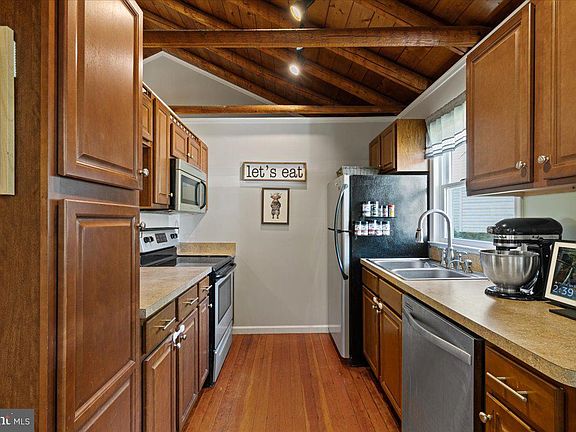 Where else can you find a 3-bedroom, 2 full bathroom home with a fully finished basement in Lusby? "Charming" doesn't even begin to cover it. From the moment you step into the foyer, you're greeted with an open and inviting view straight through the heart of the home. Vaulted wood ceilings with exposed beams (yes, straight off your Pinterest board) pair beautifully with the hardwood floors throughout the main level. The kitchen features stainless steel appliances, tons of counter space, and a layout that makes both cooking and entertaining easy. Downstairs, the fully finished basement includes the third bedroom, a second full bathroom, luxury vinyl plank flooring, and a wet bar — ideal for game nights, guests, or simply relaxing. Major updates include HVAC (2021), roof (2016), and hot water heater (2018), offering peace of mind for years to come. And speaking of peace… you're just a short walk to the community beach. Bonus: unlike most homes in the area, this one offers two dedicated driveway spots plus two additional parking spaces — room for everyone.