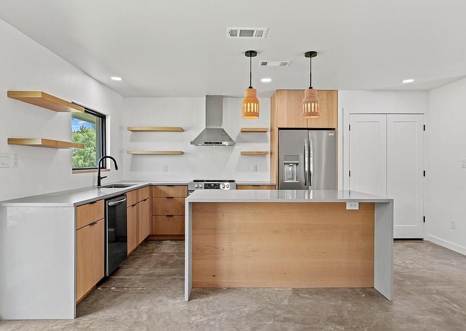 Discover the perfect blend of modern living and Hill Country charm in this completely remodeled 3-bedroom, 2-bath home just minutes from Main Street Fredericksburg. Settled on just under one acre, this 1,453 sq ft home offers the rare combination of privacy, space, and convenience—close enough to enjoy the town's vibrant shops and restaurants, yet tucked away from the hustle and bustle. Taken down to the studs and redesigned in 2023, this home features all-new electrical, plumbing, spray foam insulation, windows, doors, and a brand-new water softener system. The sleek kitchen comes equipped with new appliances, while custom handmade ceramic pendant lighting adds an artistic touch. Every inch has been thoughtfully designed, with well-planned storage and modern finishes throughout. The exterior boasts new stucco, custom fencing, and a 2-car carport with attached storage. Above the storage, wood decking has already been added—ready for railing and stairs to create a rooftop perch with sweeping Hill Country views. The large lot allows for outdoor living at its best, including a carved-out area designed for gathering around a firepit, offering both charm and privacy. The manicured yard is low-maintenance, giving you more time to relax and enjoy your home. Surrounded by generously sized properties, this home provides a sense of space that's hard to find within city limits. Whether you're looking for a full-time residence, weekend getaway, or long term rental investment opportunity, this property delivers comfort, character, and convenience in one of the most sought-after areas of Texas. Seller having a new roof installed prior to closing, roof specs included. Conservative size and upkeep, expansive yard, traditional living with a clean, modern approach.
