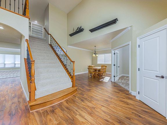 Experience luxury living in this 2-story contemporary masterpiece boasting 4 bedrooms, 3.5 baths & a den, nestled within Eagle Point Golf Course Community. Sunlit interiors with high ceilings create an airy ambiance, complemented by new plush carpeting throughout most of the home, providing comfort & style. Unwind by the gas fireplace, a cozy focal point in the spacious living area. The open kitchen is a dream, with abundant storage, granite counters, & a seamless flow for culinary creations. The den adds versatility, while the 4 bedrooms offer serene retreats.Outside is a large backyard with a deck for outdoor entertainment & a peaceful atmosphere, enhanced by privacy & meticulous landscaping. Timed sprinklers in both front & back ensure vibrant greenery year-round. This residence offers a harmonious blend of contemporary design, comfort, & elegance, inviting you to elevate your lifestyle within a sought-after community. Embrace this opportunity to make this exquisite house your home
