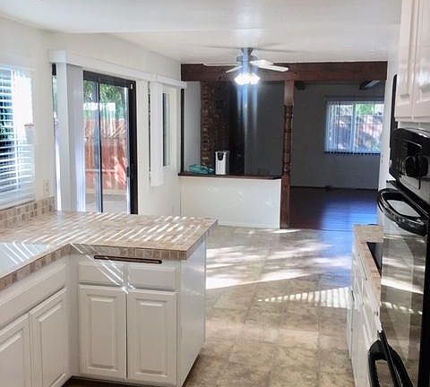 Vaulted ceilings in formal liveing room, eat in kitchen, big wood burning fireplace is cozy family room, Douyble sing and shower in Master bath, standard tub amd shower in main upstairs bath, half bath downstairs, 2 car garage landlord pays electric, gas and, trash collection. Tenanat co op water with landlord