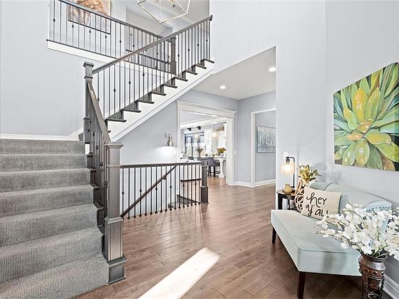 Resolution #1: Entertain More. The main level features an open-concept great room and kitchen that’s perfect for hosting. With soaring vaulted ceilings, hardwood floors, and a cozy gas fireplace, the great room is made for lively gatherings or cozy nights in. The chef’s kitchen is equally impressive, offering a large island, walk-in pantry, and plenty of space for cooking up gourmet meals—or staging a fabulous charcuterie spread.
