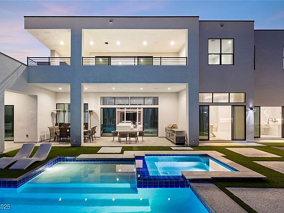 Discover a residence that redefines modern sophistication in Northwest Las Vegas. Designed with precision and intention, this architectural masterpiece blends clean contemporary lines with warm natural light, setting a new standard for refined desert living. The open-concept design flows effortlessly into multiple entertaining spaces, enhanced by sleek finishes and advanced smart-home technology. Gourmet kitchen has an expansive waterfall island, outfitted with professional-grade appliances and a hidden walk-in pantry. The primary suite features a private haven with a spa-inspired bath and 2 custom walk-in closets. Each additional bedroom is appointed with its own en-suite bath. Outdoors, the residence transforms into a resort setting. Meticulously landscaped grounds surround a heated pool and spa, complemented by a sauna and multiple lounging areas. From sunrise to sunset, every moment here is framed in luxury. This home—it's a statement of prestige, privacy, and modern elegance.