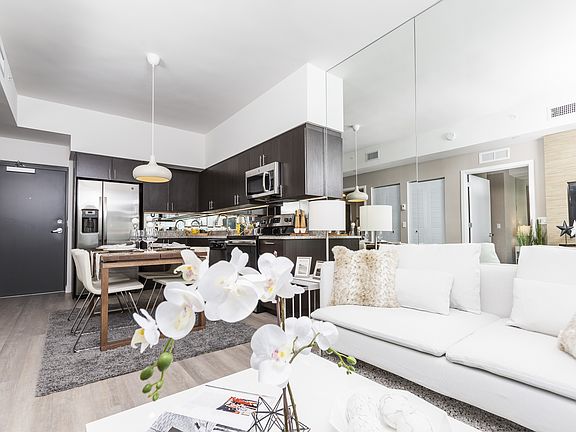 Vibrant, inviting and designed for comfort, Coral Reef's 1- and 2-bedroom apartments feature sleek kitchens with granite countertops, stainless steel appliances, in-unit washer/dryer and so much more. Dramatic 10-foot ceilings and large windows let in invigorating natural light that bring life to our thoughtfully-designed interiors.