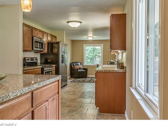 Move in ready...This home has been completely redone and shows like a model home. Brick ranch home on 1/2 acre in south mentor with finished lower level rec room with gas fireplace and possible 4th bedroom or office. Spacious kitchen with all stainless appliance package, ceramic flooring, sitting/computer area, breakfast bar and dining area, family room with stone fireplace and hardwood floor. 2 1/2 baths, laundry room, workshop, hardwood floors in the bedrooms on the main floor. Sun room with ceramic with door to the deck. Backyard with 20x16 garage with over head storage. 2 car attached garage. This home was completely remodeled in May and June 2015. New items include: the following: Roof, furnace, ac, windows, flooring, kitchen, baths, lighting, electrical panel upgrade, exterior doors, appliances, finished basement, gas fireplace in lower level rec room. Absolute must see!!!