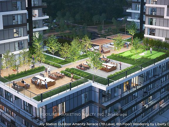 Welcome to Joy Condos, where modern elegance, smart design, and unbeatable convenience come together in one of Markham's most desirable communities. This spacious 1+Den, 1-bathroom suite offers an exceptional layout, ideal for professionals, couples, or downsizers seeking comfort without compromise. From the moment you enter, you're greeted by a bright, open-concept living space featuring floor-to-ceiling windows, refined finishes, and a thoughtfully balanced blend of style and functionality. The contemporary kitchen boasts sleek cabinetry, stone countertops, stainless steel appliances, and a breakfast bar-perfect for both everyday living and entertaining. The generous living and dining area flows seamlessly to a private balcony, your personal retreat for morning coffee or evening relaxation. The primary bedroom offers a comfortable and private space with ample closet storage and convenient access to the full bathroom. The separate den provides excellent flexibility-ideal as a home office, guest area, or creative workspace. Heating, cooling, high-speed internet, and one parking space are included in the rent, offering exceptional value and predictable monthly costs. Residents of Joy Condos enjoy resort-style amenities, including a modern fitness centre, indoor pool, sauna, yoga room, party lounge, library, guest suites, and 24-hour concierge. Perfectly situated in the heart of Markham, you're steps to transit, shopping, cafes, parks, grocery stores, and dining, with easy access to highways and major employment hubs.