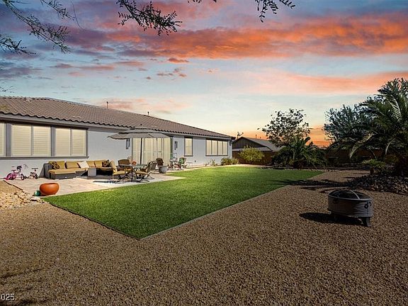 Welcome to 9763 Mountain Spruce Court — A stunning single-story ranch-style home on a rare half-acre lot in the heart of Las Vegas! This upgraded 5-bedroom, 4-bath beauty offers an open floor plan, art-decor accent walls, with two kitchen islands, 30" sub zero perfect for entertaining. Shutters T/O Enjoy a spacious sun-room/gym, large game room, and high-end finishes throughout. Separate laundry room w/ sink. The oversized 4-car epoxy garage features a convenient drive-thru bay to the backyard—ideal for toys, trailers, or extra parking. The landscaped yard boasts fruit trees including pomegranate, pear, apricot, and apple. A true blend of comfort, function, and style—this home has it all!