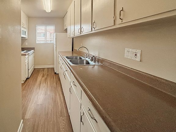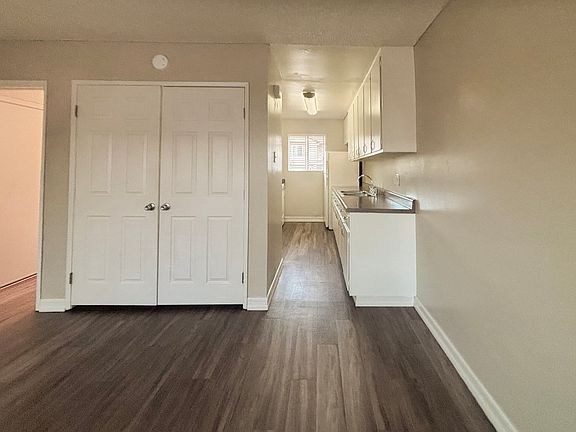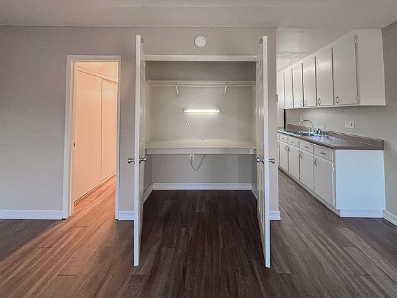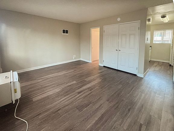 Charming studio apartment in Lakeside featuring hardwood flooring, a walk-in closet, and floor-to-ceiling built-in storage. The fully equipped kitchen includes a microwave, range, and refrigerator. Enjoy a dedicated dining area, spacious living room, and a full bathroom with a shower/tub combo. Wall A/C unit included. One assigned parking space. Access to onsite laundry and community pool.