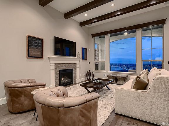 WOW - Epic panoramic mountain & city views from this stunning house! Enjoy Colorado sunsets, the twinkling of the city lights & the 4th of July fireworks. Walk in the front door & your reaction will be one of pure delight! You will instantly realize that this one was worth the wait. Impeccably cared for-pristine condition (professionally cleaned on a weekly basis)-it still smells like a brand new home. Every inch of this beauty is upgraded - walls, flooring, counter tops, cabinets, lighting, tile, appliances to name a few. Open & inviting floor plan with 12 foot ceilings with accent beams & 8 foot doors throughout. Your favorite room will definitely be the living room where you will constantly be in awe of the killer views. It is rare to have BOTH mountain AND city views such as these. The chef's kitchen is perfect in every way. The appliances still sparkle like new. Extra space in the butler's pantry with wine cooler & sink. The dining room is perfect for your formal dining affairs. The primary bedroom also has unobstructed mountain & city views - what a nice way to start & end your day. California closet. Bedroom #2 on the main floor is perfect for your over night guests & features a walk in closet & full bath. The main level office has French glass doors - it is currently being used as a music room. Built-in speakers in all the key areas. Incredible outdoor space for your daily use or the future entertaining that you will surely be doing. Main covered deck is 15'x17', private, has high ceilings with canned lighting, ceiling fan, outdoor speakers & a gas fireplace. Enjoy the lower level private patio too. The open split staircase features hardwood flooring & wrought iron spindles will lead you down to the professionally finished walk out basement where you will find bedrooms #3 & #4, full bathroom, home gym, family room, wet bar with dishwasher & wine cooler. Minutes away from Lone Tree Rec Center, Lone Tree Arts Center, hiking trails, shops and restaurants.