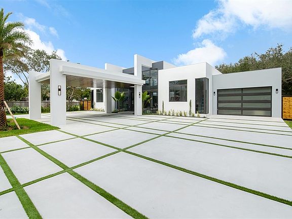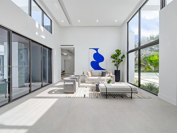 Exquisite modern new construction built among stately palms and mature oak trees on a quiet cul-de-sac. Featuring 5 bedrooms, 6 1/2 bathrooms, Italian porcelain floors and walls of glass offering picturesque views of the 40,075 SF estate. Chefs Kitchen with custom cabinetry, gorgeous 10' x 6' marble island, designer pendants and Thermador appliances. Main Bedroom Suite includes a large walk-in closet with stone topped island and gorgeous glass pendants. Relax in the Spa Bathroom with soaking tub, rain shower and refrigerator. Experience the ultimate South Florida lifestyle lounging around the 38' pool with spa and 3 beaches. Cooks will love the Summer Kitchen with stainless steel grill, double gas burner, ice maker and refrigerator. Completion estimated January 15, 2023. 1/15/2023.