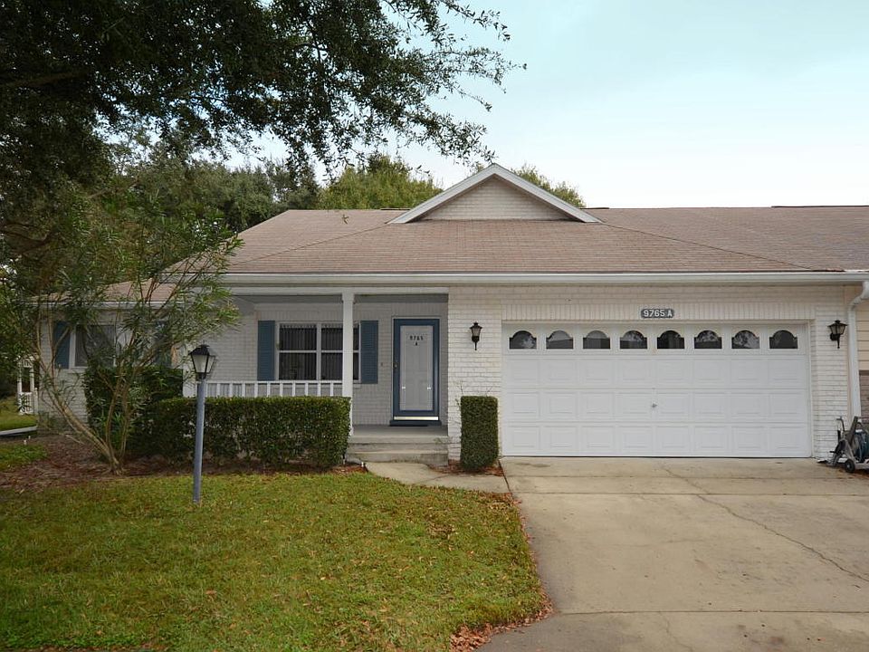 No neighbors in back! This spacious end-unit expanded Bostonian model villa is located in the much sought after gated 55+ golf community of On Top of the World! This home features a newer roof (2010), newer HVAC (2010), inside laundry, French door access from master bedroom to lanai, 2 skylights, pull-down stairs to access attic storage, neutral tile in kitchen and baths, work-bench and storage cabinets in garage, newer plumbing, and more. A large inviting Front Porch under roof welcomes you to the home. Step inside to the combination Living Room/Formal Dining area. Moving toward the back of the home you will find the roomy open floor plan eat-in Kitchen with prep-island that overlooks a very spacious expanded Great Room. To the left of the Living Room/Formal Dining are