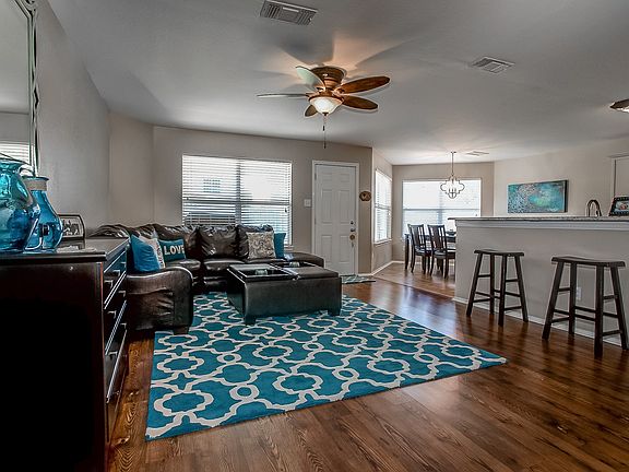 Outstanding MOVE IN READY home with open floor plan. Kitchen features granite counters, stainless appliances, beautiful cabinets, island, walk-in pantry. Master bed and bath down, 2 bedrooms, 2nd living area and full bath up. Backyard includes spacious covered patio perfect for entertaining. No HOA fees.