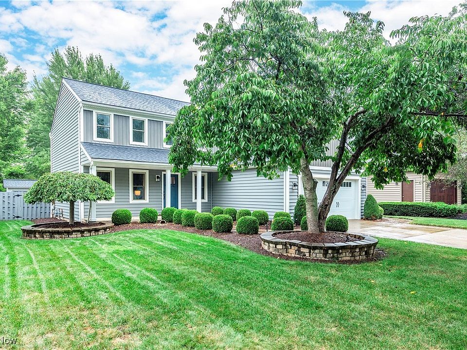 Pride of ownership shines throughout this PRISTINE, TASTEFULLY UPDATED Colonial in the sought-after Plum Creek development of Olmsted Falls. Perfectly situated on a beautifully landscaped, park-like lot w/fenced yard, this home has been METICULOUSLY UPDATED INSIDE and OUT—offering true MOVE-IN readiness. The curb appeal sets the tone w/manicured landscaping, newer roof, windows & siding, plus a widened driveway w/stamped concrete borders & walkways that lead to the cozy front porch & rear deck. Step inside through the newer entry door & you’ll immediately appreciate the open, elegant design. The main level was completely RE-IMAGINED to create a seamless living space w/ceramic plank flooring & stylish finishes. At the heart of the home is the stunning oversized Kitchen, featuring a 7’ quartz island w/ contrasting cabinetry, 39” white soft-close cabinets, quartz counters, counter-to-ceiling tile backsplash, black stainless appliances, black fixtures & garden sink. The Eating Area adds built-in cabinetry w/quartz counters w/newer French doors to deck. The adjoining Family Room is anchored by a striking stone wall fireplace, perfect for relaxing. A modern Powder Room, Laundry w/cabinetry & an exceptionally clean 2-car attached Garage w/showroom-style tile flooring. Upstairs, discover spacious bedrooms w/custom closets, including the vaulted Owner’s Suite w/walk-in closet & luxurious Bath w/dual vanities, deep soaking tub & tiled shower & 2nd full bath w/granite vanity. The partially finished lower level offers 2 versatile recreation areas & large storage/workshop area w/built-in counter. Outdoors, the private FENCED yard is beautifully landscaped w/large deck, gazebo & newer shed w/electric. Residents also enjoy the neighborhood playground & park w/pavilion. All major updates are complete—Roof, Windows, HVAC, Siding, Kitchen, Baths, Flooring, and more—making this a true “MOVE-RIGHT-IN” home. Ideally located near the Cleveland Metroparks, shopping, restaurants & more!