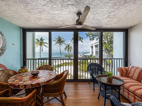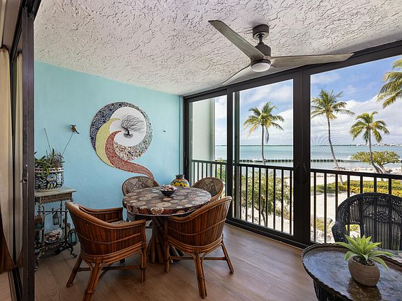 Imagine waking up each day to breathtaking bay views that perfectly capture the tranquil beauty of the beach right outside your door, inviting you into a life of coastal serenity. This 2-bedroom, 1 1/2-bath bay and beachfront home offers more than just luxurious condominium living; it presents an unparalleled experience in seaside living. The well-appointed kitchen boasts sleek quartz countertops, stainless steel appliances, and a spacious pantry, ideal for culinary creativity. The open floor plan creates an inviting space for entertaining friends and family. Step outside to your private balcony, a versatile space where you can savor the bay breezes in an open-air setting or relax in a climate-controlled environment. The stunning handmade mosaic mural adds an artistic flair to your outdoor retreat, making it a true sanctuary. Upstairs, the owner's suite provides a private oasis with expansive bay views that greet you each morning, setting the perfect tone for your day. This home is equipped with impact-resistant, sun-reflective sliding glass doors, ensuring safety, privacy, and energy efficiency. Experience the unmatched charm of The Rock Harbor Club in Key Largo. This prime boating location offers in-and-out dry rack storage and dockage in a protected basin. Unwind at the heated and chilled pool, or take advantage of the tennis and pickleball courts, basketball, bocce ball, and kayak/paddleboard launch and storage. The bay-front clubhouse features Wi-Fi, TV, movies, a full kitchen, gym, restrooms, showers, and saunas. Relax on the sandy beach, gather around the fire pit, and witness breathtaking sunsets every evening. Immerse yourself in the Florida Keys lifestyle--this is coastal living at its finest!