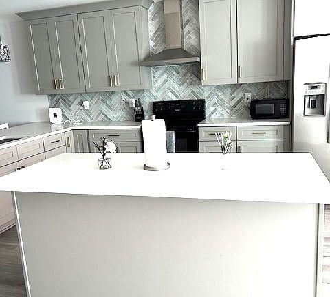 Oversized islandHigh-quality finishesBrand new roofPrivate backyardSpa-like feelSleek fixturesBrand new flooring