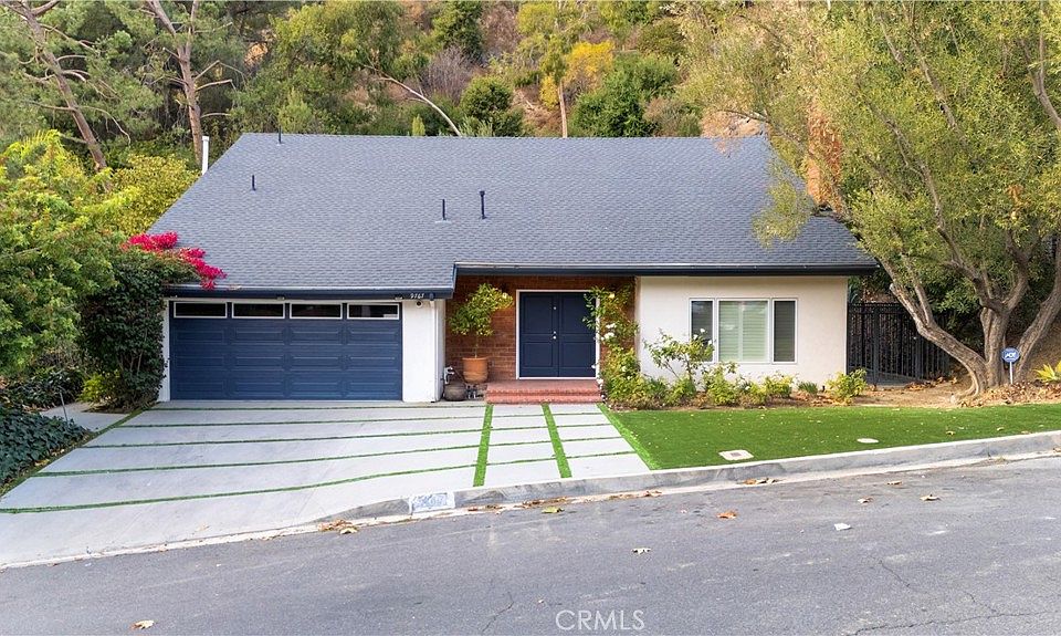 Tucked away on a quiet cul-de-sac and surrounded by the lush hillside of Benedict Canyon, this beautifully updated home sits on an expansive 20,000+ sq ft lot. Double doors open to a grand foyer with soaring double-height ceilings, which flows seamlessly into the spacious formal living and dining room, where double French doors lead out to the backyard. At the heart of the home lies a remodeled eat-in kitchen equipped with top-of-the-line appliances. The adjoining family room boasts another set of French doors, allowing you to enjoy indoor-outdoor living from either space. A serene backyard retreat awaits outside, featuring a low maintenance artificial turf yard and ample patio space for lounging or al fresco dining. With no neighbors directly behind you, this outdoor oasis offers unparalleled privacy and tranquility. Head upstairs to find three generously sized ensuite bedrooms, including a luxurious primary suite with dual walk-in closets and dual bathrooms, one of which has a soaking tub framed by an oversized window that looks out onto the lush hillside. Additional amenities include a main-level ensuite bedroom, security system, and two-car garage with laundry hookups. Located in the charming Beverly Crest neighborhood, within the top rated Warner School District, this home provides quick and easy access to everything the Valley and Westside have to offer, making this area highly desirable.