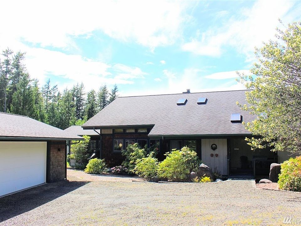 Unique Custom Home~Master On The Main~Intriguing Unrestrained Use Of Clear Vertical Knot Free Hemlock. Water Filtration, Heat Pump,Gen Tran & Generator,French Doors & Windows w/Custom Privacy Glass Beckon Light & Stellar Olympic Views! Custom Kitchen For 2 Cooks W/Island & Dining Nook. Amazing Formal Dining W/French Doors w/ mountain views, Sprawling Master Suite, Built In Sound System,Crawl Space W/Lights & Outlets,3 Car XX Lg Detached Gar,Circular Drive/RV Parking.5 Min.To Olympic View Marina.