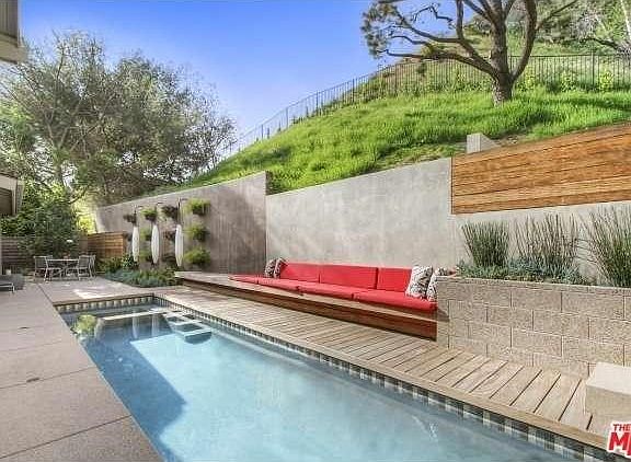 Nestled on a quiet cul-de-sac in Beverly Hills 90210, this 4 bedroom, 3.5 bath contemporary has been tastefully redesigned inside and out. Highlights include: a gourmet kitchen with top of the line appliances, center island, and family room, a spacious living room with high ceilings and lots of windows, and a master suite with a wood burning fireplace, sitting area, and walk-in closet. The newly redesigned master bath provides porcelain heated floors, a custom tub & shower. All 4 bedrooms are upstairs. This property also features a generous, gated grassy courtyard, mature fruit trees and a professionally designed pool & spa with outdoor lighting to make it ideal for enjoying day or night. Just minutes from the center of Beverly Hills restaurants and shopping, this property provides serenity rarely found in city living.