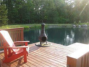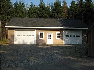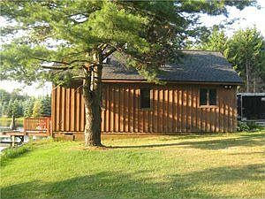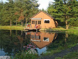 Yearound or weekend retreat! Nicely located off the road, the blacktop driveway leads back to your own little piece of paradise. Beautiful pond with waterfall is the focal point from the deck of the wood sided cabin. Kitchen has center island, stove and refrigerator. living room with cathedral ceiling and wood stove. Bathroom/laundry, bedroom and enclosed porch. 30x50 insulated garage is ideal for cars,workshop,extra storage.