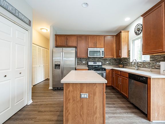 Fantastic spacious home in popular Symphony Meadows ~ Brick exterior and entryway with fresh landscaping ~ Brand NEW Luxury Vinyl Tile (LVT) Flooring throughout 1st floor! ~ Open concept living room and dining room perfect for entertaining with tons of recessed lighting ~ Kitchen with stainless steel appliances, corian countertops including island & 42 cabinets with trim plus custom tile wall that matches the tile backsplash & pantry too ~ Eating Area w/ sliding door to backyard ~ Family room with gas fireplace and tons of windows ~ Office/Playroom tucked away near powder room & under the stairs walk-in storage all with fresh paint & flooring too ~ Upstairs find a massive Loft with endless possibilities ~ Master suite with his/hers walk-in closets, ensuite bath with separate shower & soaker tub plus dual vanities ~ 3 more spacious bedrooms, Hall Bath w/ sink & extra vanity space & 2nd floor laundry too! ~ all of this & a private, fenced backyard with stamped concrete patio and pergola with NEW canvas cover that backs to Millennium Trail, is 1 block from the park, basketball courts and a pond! NEW: A/C, LVT Floors, Freshly Painted, Landscaping, Painted Front Door & Hardware, NEWER furnace, water heater, & powder room fixtures ~ WOW WOW!