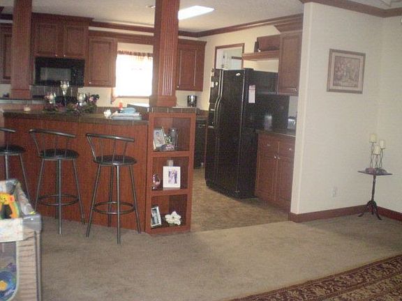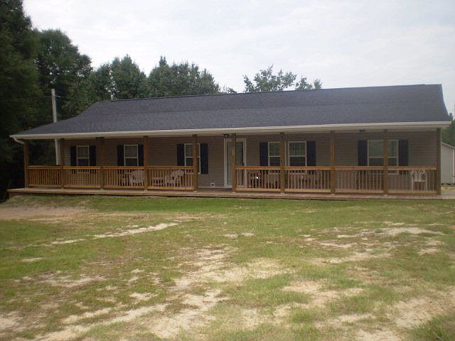 REDUCED!Looking for a New home with Land without having to do all the work? This modern floor plan delivers 3 bedrooms,2 baths(each with garden tub),cozy family room,living room,stylish kitchen with breakfast bar which includes all appliances.A home office and spacious laundry room finishes the layout of this remarkable dream.Outside features a huge 12x60 covered porch,and a 12x10 storage building