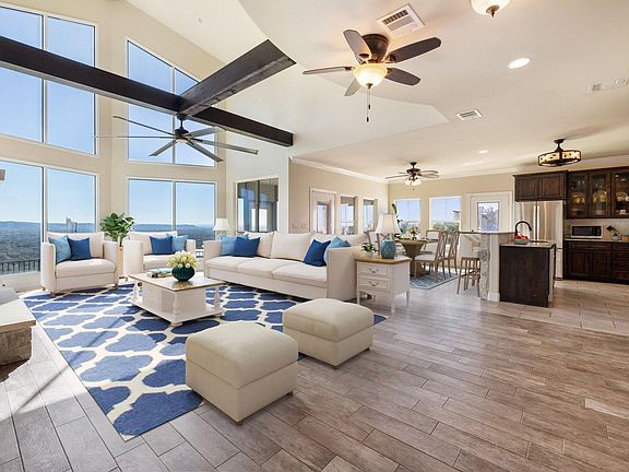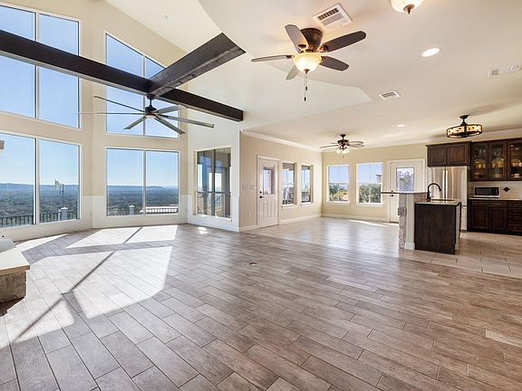 Situated on a sprawling 8-acre estate with panoramic vistas of the Upper Colorado and Lake LBJ, this remarkable residence is a gem of both design and natural beauty. The house, adorned with floor-to-ceiling windows in the living room, and boasts a thoughtfully designed open floor plan. With 4 bedrooms and 3 baths, including a main-level primary suite, and a recently added 4th bedroom above the garage with en-suite bath, the layout combines practicality and privacy with luxurious comfort. The residence also includes a hidden “safe room” to ensure your family’s safety. The heart of the home, the living area, serves as a light-filled sanctuary with its expansive floor-to-ceiling windows providing an unobstructed view of rolling hills and the Upper Colorado river and Lake LBJ. Outdoors, the property transforms into an oasis of relaxation and recreation. A refreshing custom resort-style pool with spa, complete with automatic cover, invites residents to cool off on hot summer days, while a stylish cabana provides a shaded retreat for leisurely afternoons or entertaining guests. An added dimension to the water enthusiast's paradise, the property features a community boat dock with a coveted deeded boat slip. Enjoy everything this home has to offer.