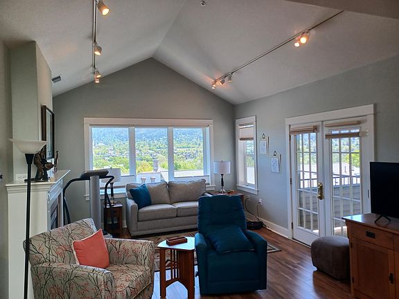 Incredible views from this top floor, south facing condominium located in one of the most desirable buildings in the community - Aspen attached to the clubhouse. Vaulted ceilings, skylight, primary suite with custom tiled shower and large walk-in closet, large utility room with loads of storage. Wonderful balcony with access from French doors in living room. Gas fireplace and wood floors add to the comfort in this large 1769 sq. ft. condo. This is one of only four condos top floor and South facing. A short walk to the elevator and to the dining room at the clubhouse. Easy to parking garage with assigned parking and storage. Must see this incredible property. Owner pays for Association dues. 55 plus community. One person per household age requirement of 55 years old or older.
