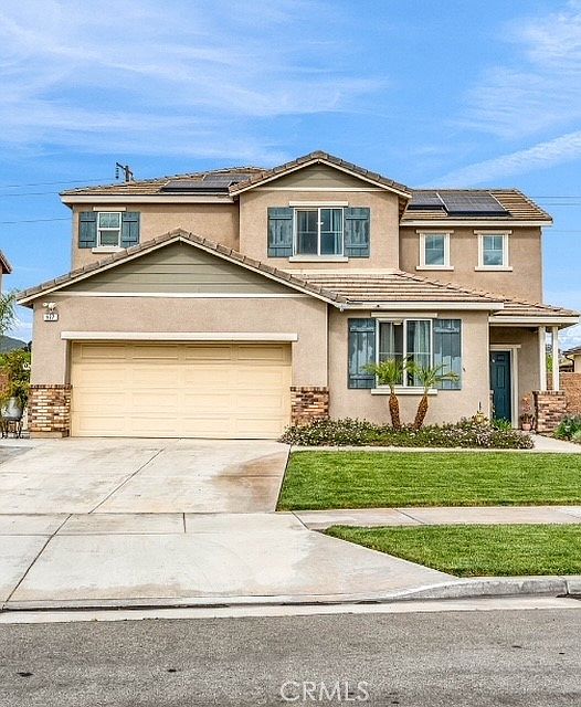 Turn-key two-story home built in 2018 featuring 4 spacious bedrooms and 3 full baths, including a highly sought-after downstairs bedroom and full bath. Perfect for guest or in-laws living quarters. This beautifully maintained property offers and open-concept floor plan with modern finishes throughout. The gourmet kitchen boasts quartz countertops, stainless steel appliances, and a large island perfect for entertaining. The primary suite features a luxurious en-suite bathroom and a walk in closet with custom built-ins for optimal organization. Upstairs you'll find a dedicated laundry room with built in shelves for added convenience and storage. Enjoy a fully landscaped backyard with a covered patio, ideal for outdoor relaxation. Energy-efficient with PAID-OFF SOLAR PANELS!! Back on the market at no fault of the Sellers. Appraisal has been completed to verify value. Conveniently located near shopping, dining, and easy freeway access. Schedule your showing today!!