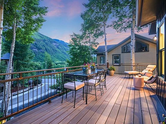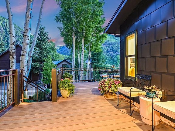 This 2023 to-the-studs remodel sits on a quiet cul-de-sac high in the East End of Telluride. Walk to town to shop/eat/hike/bike or to stroll along the river to Town Park. This beautiful home has 3 bedrooms and 4 baths. A new 400 sq ft Batu wood and steel deck along the front of the home makes for amazing views and entertaining! Views of Bear Creek, Ski Slopes, Needle Rock, and Ingram Peak await the lucky buyer. Lot is .07 acre which is oversized for Telluride, on the sunny side of town. New electrical, plumbing, roof, boiler room, European white oak floors, Ann Sacks tile, custom cabinets, and quartz/marble surfaces throughout. (Partial )Elegant furnishings are included with the purchase price but see attachments, allowing for a seamless move-in experience.
