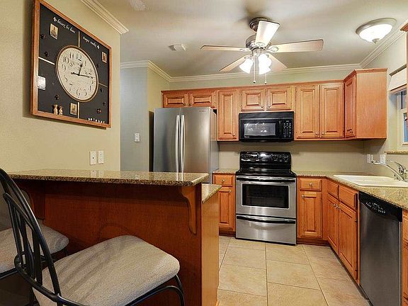 Stunning Condo that has been Completely Renovated! Kitchen has newer maple cabinets, slab granite countertops, stainless steel appliances, and serving bar. Cozy living room with wood burning fireplace and 20" porcelain tile flooring. Guest bathroom downstairs has pedestal sink and brushed nickel fixtures. Newer light fixtures throughout the home. The upstairs features a huge bedroom with sitting/office area, two walk-in closets with built in shelving, french doors open up to the master bathroom. A dual vanity area and large whirlpool tub/shower make up the master bath. Upstairs can be converted back to a 2 BR easily. The back patio is fenced with a gate, stone pavers, and storage shed will remain. Two covered, reserved parking spaces. Low HOA fees and well maintained. Perfect location and great neighbors.