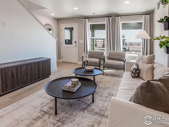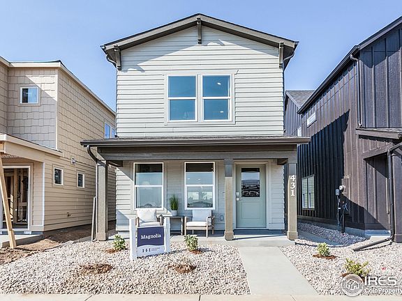 Craftsman elevation Magnolia plan by Hartford Homes in Prairie Song in Windsor. New construction cottage home. Open floor plan, two story. Kitchen w/ island. Powder bath on main level. Eucalyptus painted maple cabinetry. Dekton countertops. Vinyl plank flooring throughout main level and carpet in bedrooms. S.s. dishwasher, fridge, microwave, range. Second level has 2 bedrooms and laundry w/ Washer & dryer included. Central a/c. 2 car garage. Garage door opener and keypad. Passive radon system. Fenced yard w/ landscaping included (artificial turf in backyard). Future community plans for a pool, club house, parks and trails. There is a $415 annual non-potable water fee to be paid to metro district. $125 monthly o & m fee for metro district. PHOTOS FROM PREVIOULSY BUILT HOME AND THEREFORE MAY DEPICT DIFFERENT FINISHES. ASK ABOUT CURRENT LENDER OR CASH BUYER INCENTIVES.